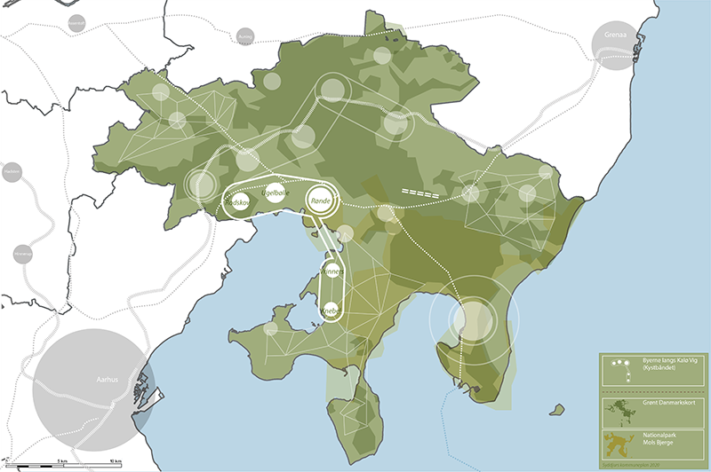 Der bor i dag ca. 6.000 indbyggere inden for Kystbåndets område. For såvel Rønde som Ugelbølle gælder det, at disse byområder er tæt på udbyggede, og udvidelsesmulighederne er derfor begrænsede. Kalø Bugt-området udgør et helt unikt østjysk bosætningsområde med sin kombination af en enestående herlighedsværdi og en høj tilgængelighed til arbejdspladserne og kulturoplevelser i Aarhus og det østjyske vækstcenter.