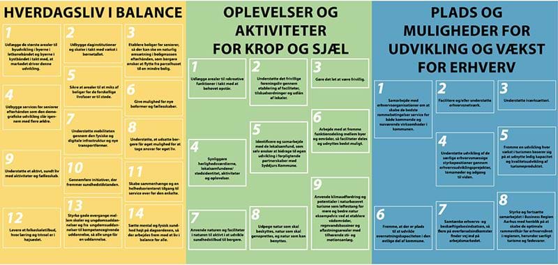 Kommuneplan 2020 løfter de af de tre indsatsområders 30 målsætninger, som har betydning for arealanvendelsen. Indsatsområderne er: